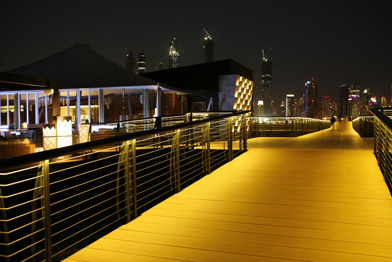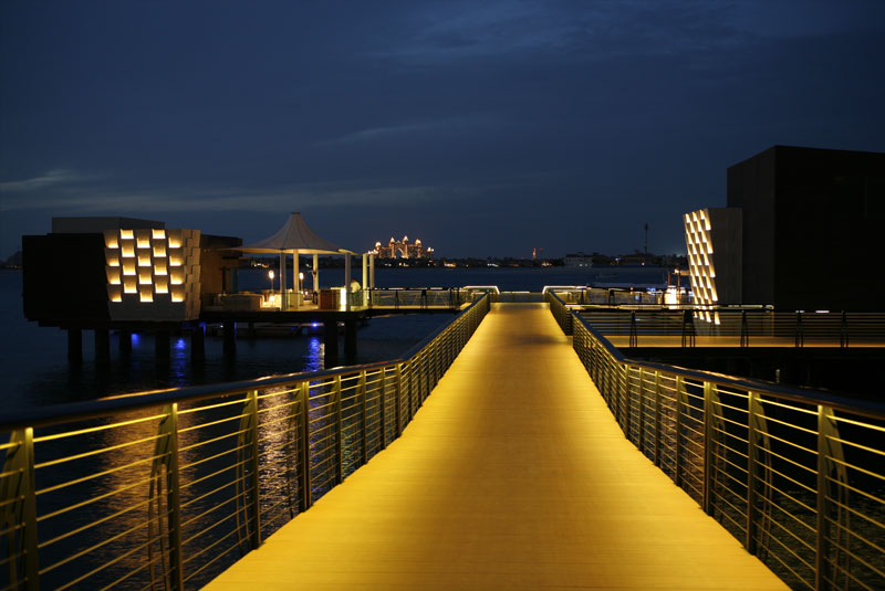 Sweeping panoramic views of the Gulf and Dubai skyline beyond, the striking 101 restaurant with al fresco dining opens onto a fashionable overwater chill-out lounge with daybeds, beach-side tables and bar.